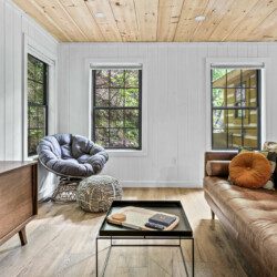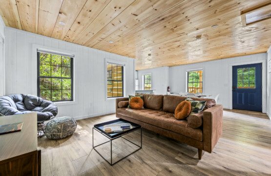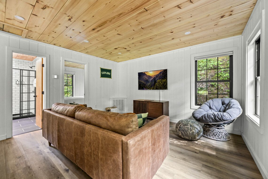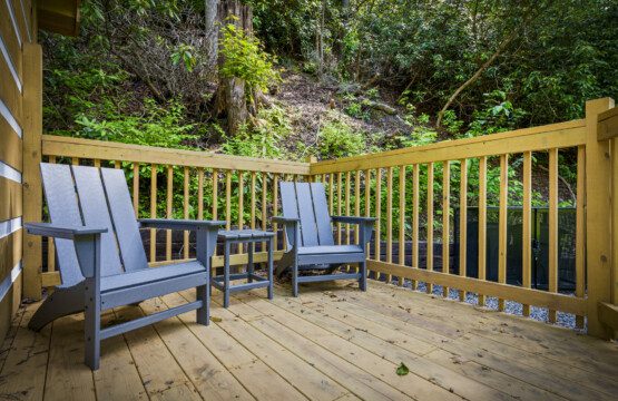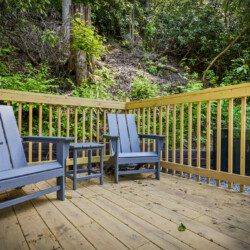 Step outside onto your private porch, where you can sip your morning coffee while listening to the soothing sounds of the stream that runs right in front of the cabin. It’s like nature’s white noise machine, perfect for drowning out the hustle and bustle of everyday life. The porch is furnished with comfortable seating, making it the perfect spot for reading, relaxing, or plotting your next adventure.
