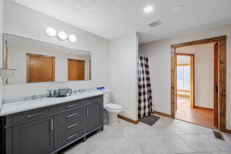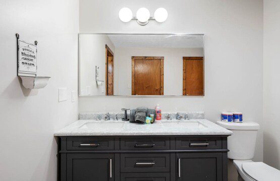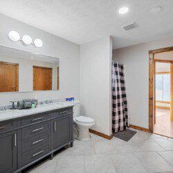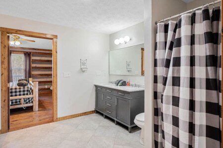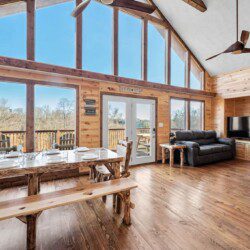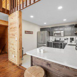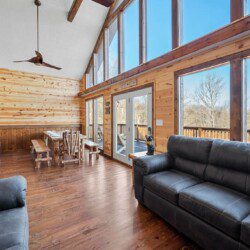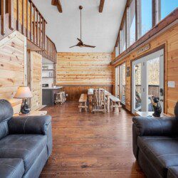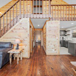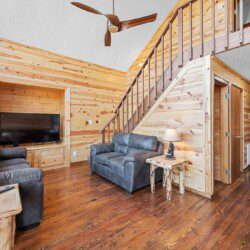 On the main level of this cabin are two bedrooms with king beds and two bathrooms for you to enjoy.