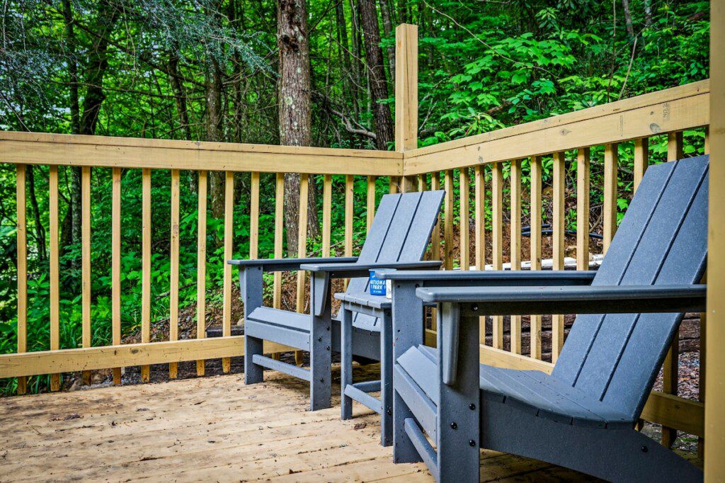 Step outside to your private porch, where you can sip your morning coffee while pretending to be one with nature. Enjoy the soothing sounds of the stream that runs right in front of the cabin—nature’s white noise machine. The porch is decked out with comfy seating, ideal for relaxing and pondering life’s great mysteries (like why you haven’t booked this cabin sooner).