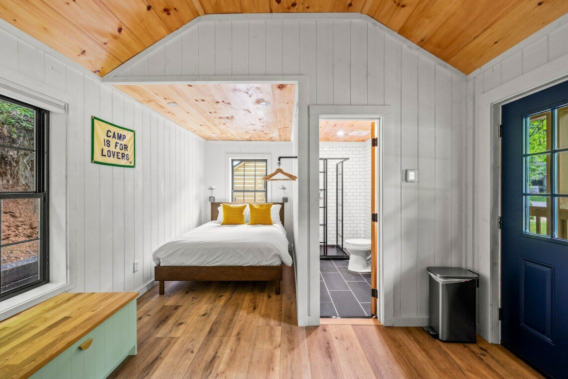 Welcome to Cabin 1 at Camp Moonshine, your cozy hideaway in Gatlinburg’s enchanting Arts and Crafts District. Perfect for couples or solo adventurers, this delightful studio cabin has been renovated with high-end finishes to give you the ultimate “glamping” experience—yes, you can actually cook your own meals and not just eat trail mix!