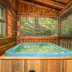 • Covered porch hot tub — soak and enjoy the fresh mountain air
